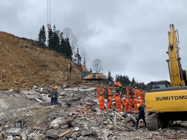 云南省消防救援总队紧迫调派7个支队812名指战员、174辆消防车、45头搜救犬第一时间到达现场救援。当日,经应急管理部批准,国家消防救援局调派贵州省消防救援总队208名指战员、41辆消防车、6头搜救犬紧迫声援。 消防救援部队划定搜救区域,通过人机(大型工程机械)协同、编组作战,以房找人、以犬找人、以装找人的方式,经过4天3夜的尽力,1月25日19时26分,云南省消防救援总队找到第44名在册失联人员。